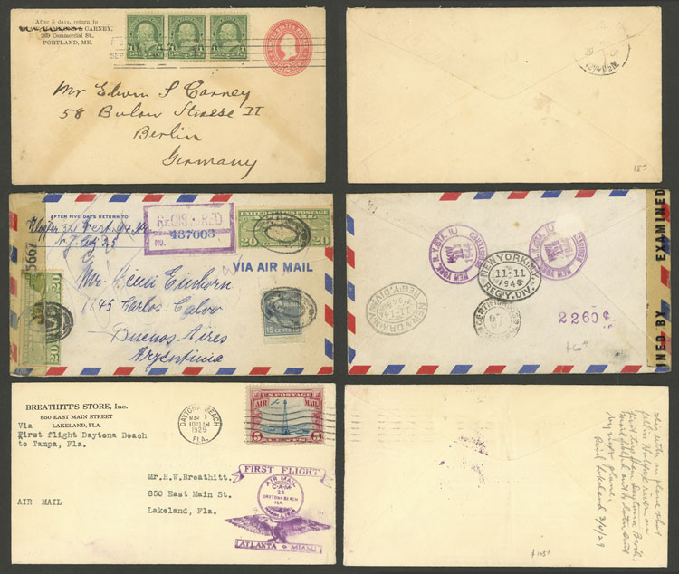 10 Covers and cards used after 1900, including first flights, attractive postages and destinations, very good lot with a very low start! IMPORTANT: please view ALL the photos of the lot, because all the covers have been scanned (both