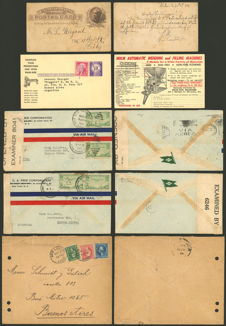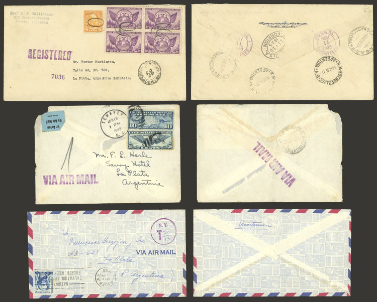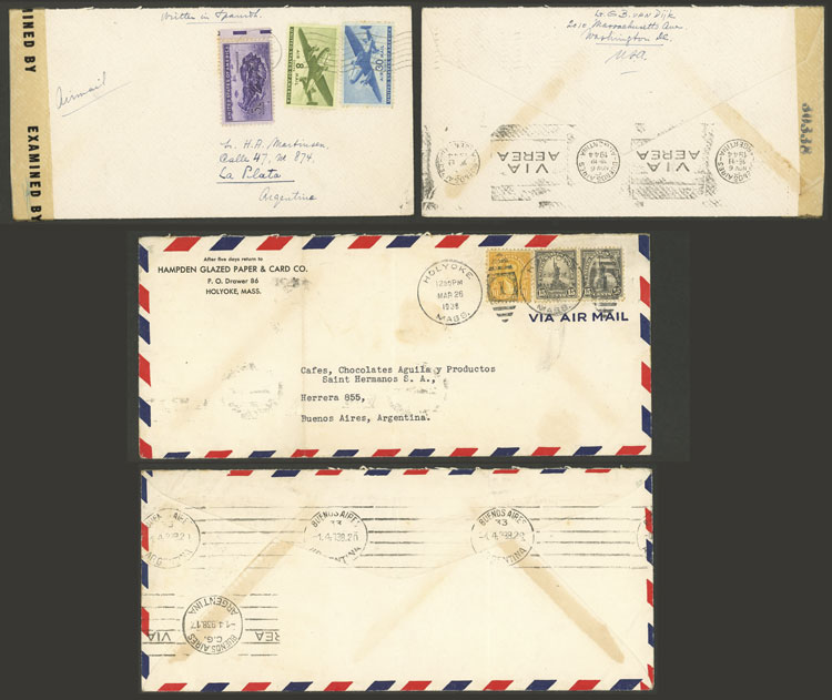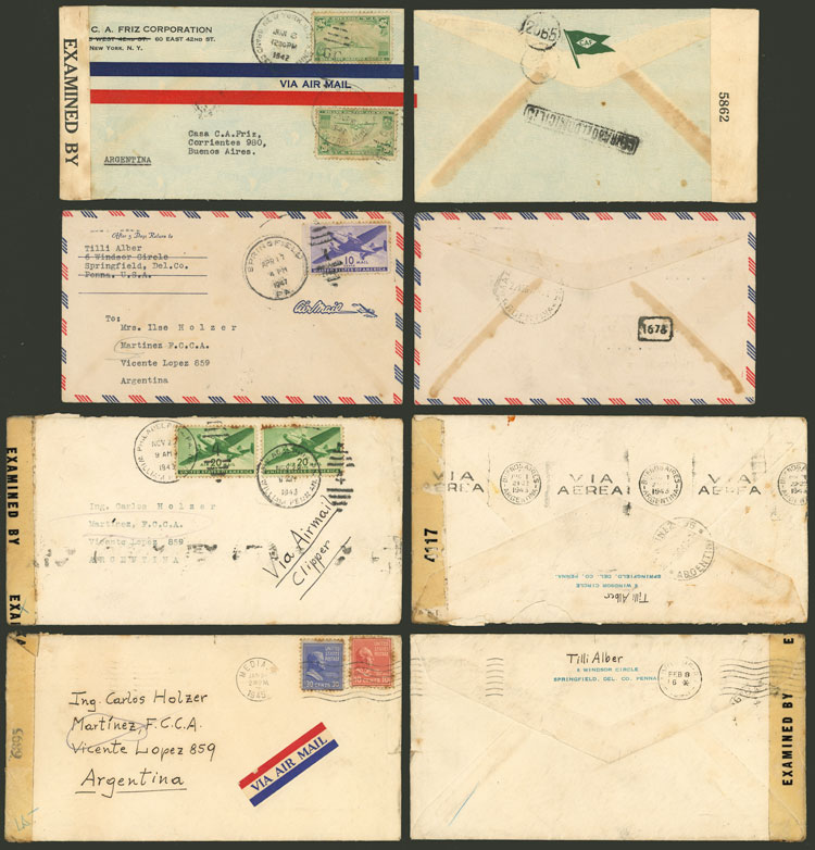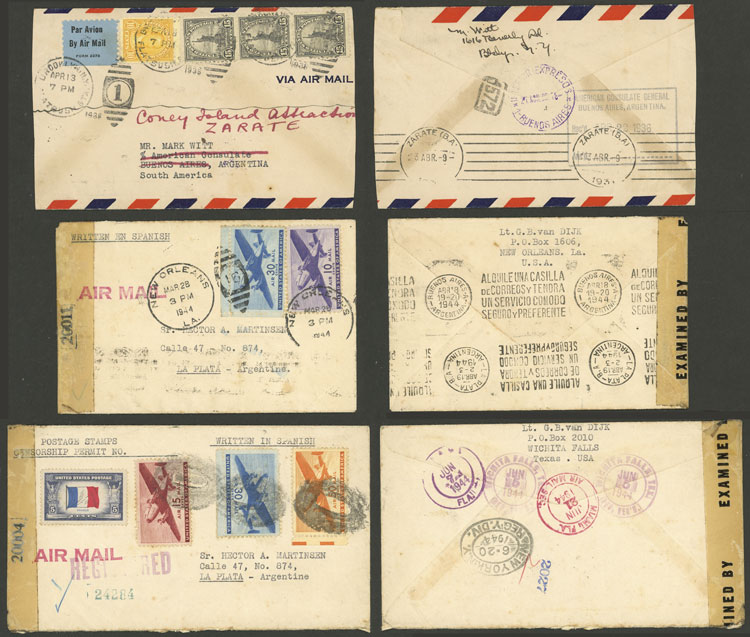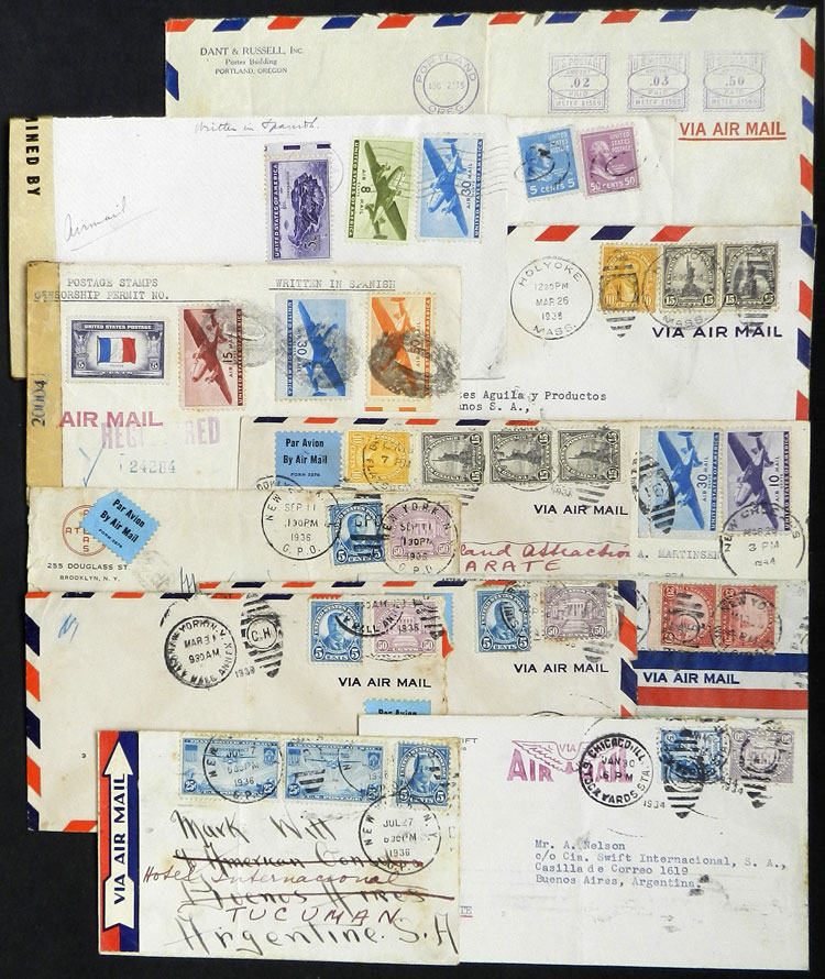 13 Airmail covers sent to Argentina between 1934 and 1944, there are nice postages, 3 CENSORED, several forwarded to other cities, etc., very good lot, low start! ATTENTION: please view ALL the photos of the lot, because all the covers