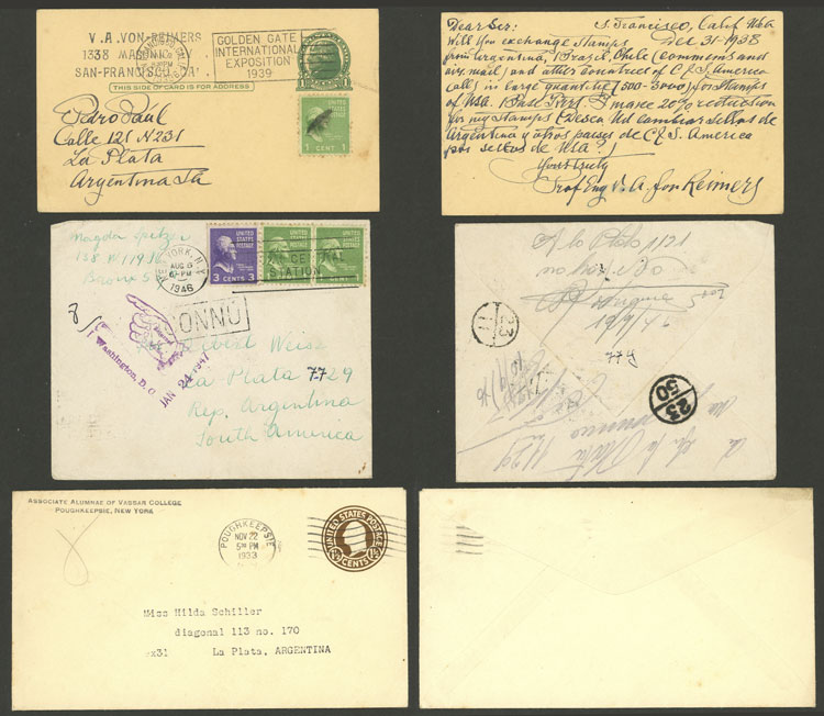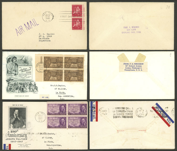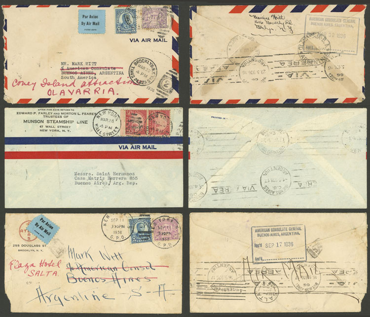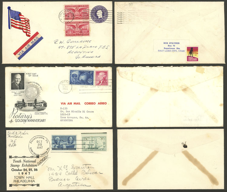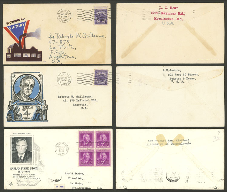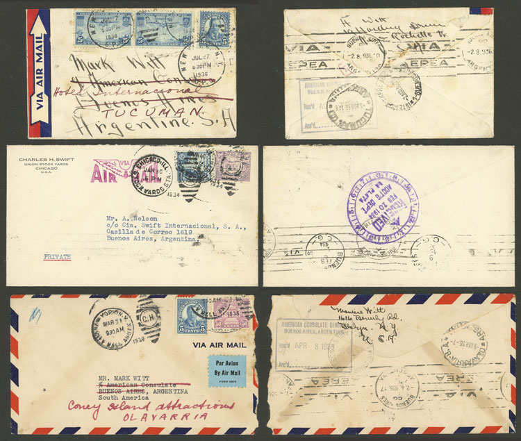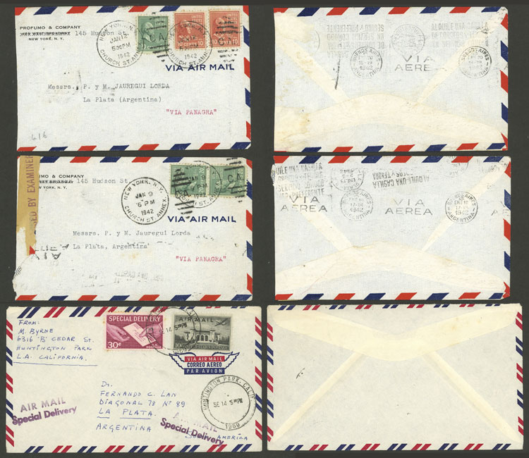 13 Airmail covers sent to Argentina between 1934 and 1944, there are nice postages, 3 CENSORED, several forwarded to other cities, etc., very good lot, low start! ATTENTION: please view ALL the photos of the lot, because all the covers