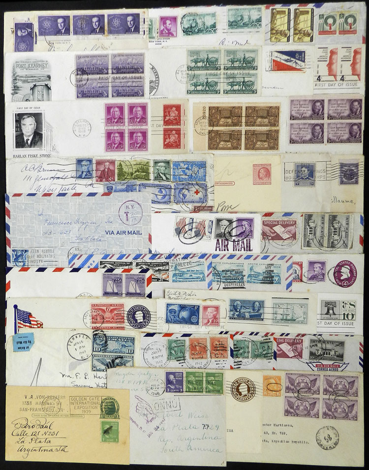 Lot of 35 covers or postal stationeries, almost all used between circa 1939 and 1960, including some returned to sender, with due marks, express mail, etc. ATTENTION: please view ALL the photos of the lot, because all the covers have been
