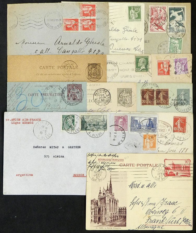 14 Covers, cards and postal stationeries used between 1870 and 1949, there are several very interesting pieces, including a re-used cover (with the inside out!), high market value, good opportunity! IMPORTANT: please view ALL the photos