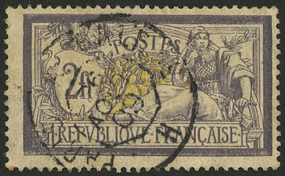1900 2Fr. violet and yellow, used, excellent quality! (Image)