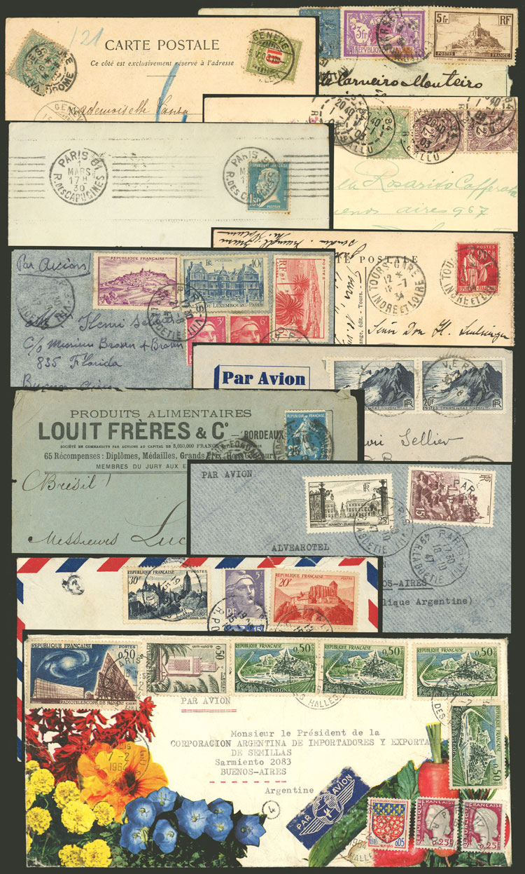 11 Covers, postcards, etc. used between 1903 and 1964, there are interesting cancels and nice frankings, low start! IMPORTANT: Please view ALL the photos of the lot, because all the material has been scanned. (Image) (Image-02)