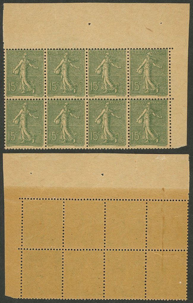 130k, 1903 Marianne Sower 15c. green printed on "GC" paper, fantastic corner block of 8, MNH, excellent quality! (Image)