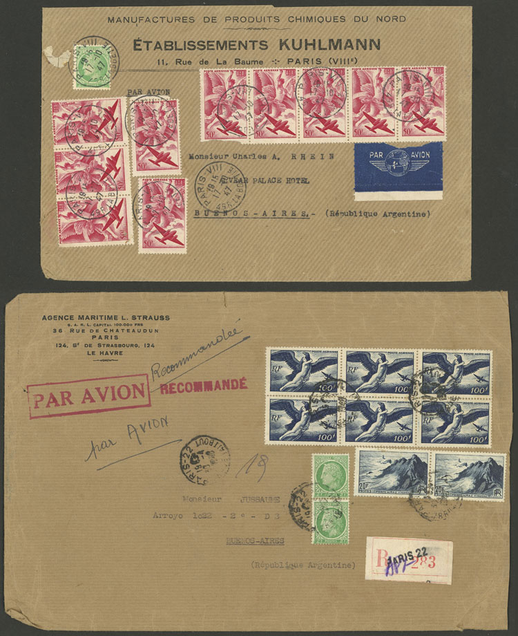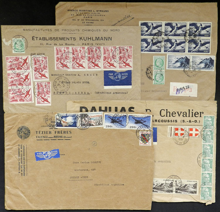 LARGE POSTAGE: 4 Airmail covers sent to Argentina between 1947 and 1955 with important postages, some small faults normal in large envelopes, very attractive!