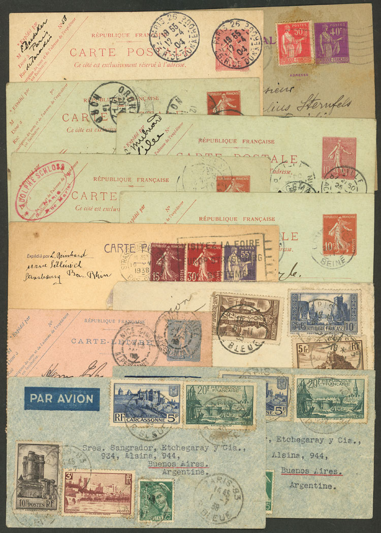11 Covers, cards or postal stationeries used in varied periods, some sent by airmail to Argentina, mixed quality, some with defects, others of VF quality, low start! IMPORTANT: Please view ALL the photos of the lot, because all the