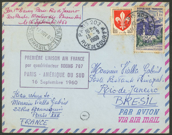 16/SE/1960 Paris to Rio de Janeiro, "First flight of Air France with a Boeing 707", with special arrival handstamp, etc., very nice! (Image) (Image-02)