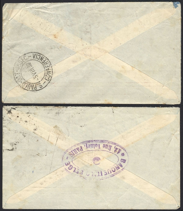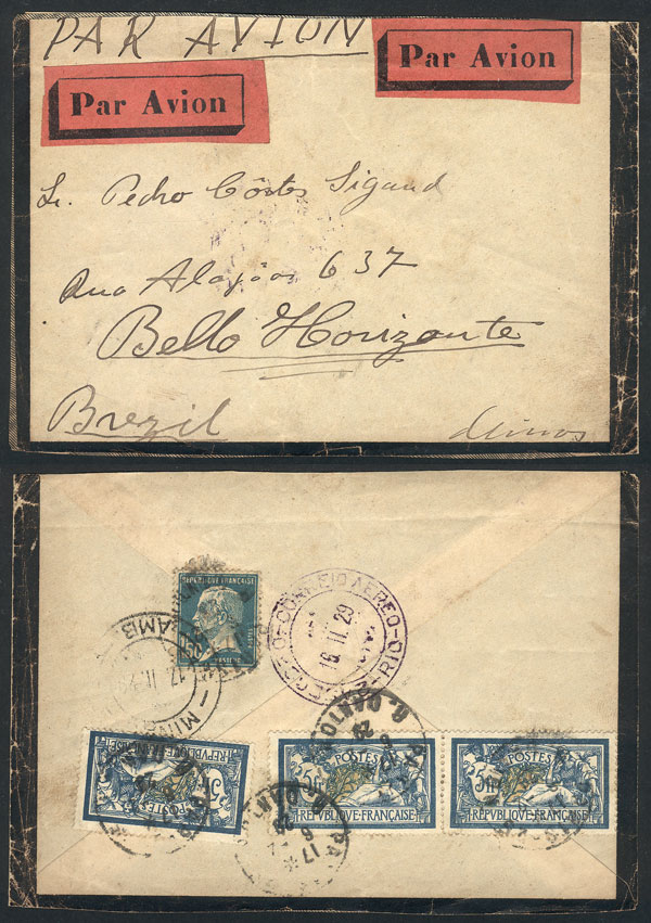cover sent by airmail from Paris to Brazil on 6/FE/1929, franked on back with 16.50Fr., very nice! (Image)