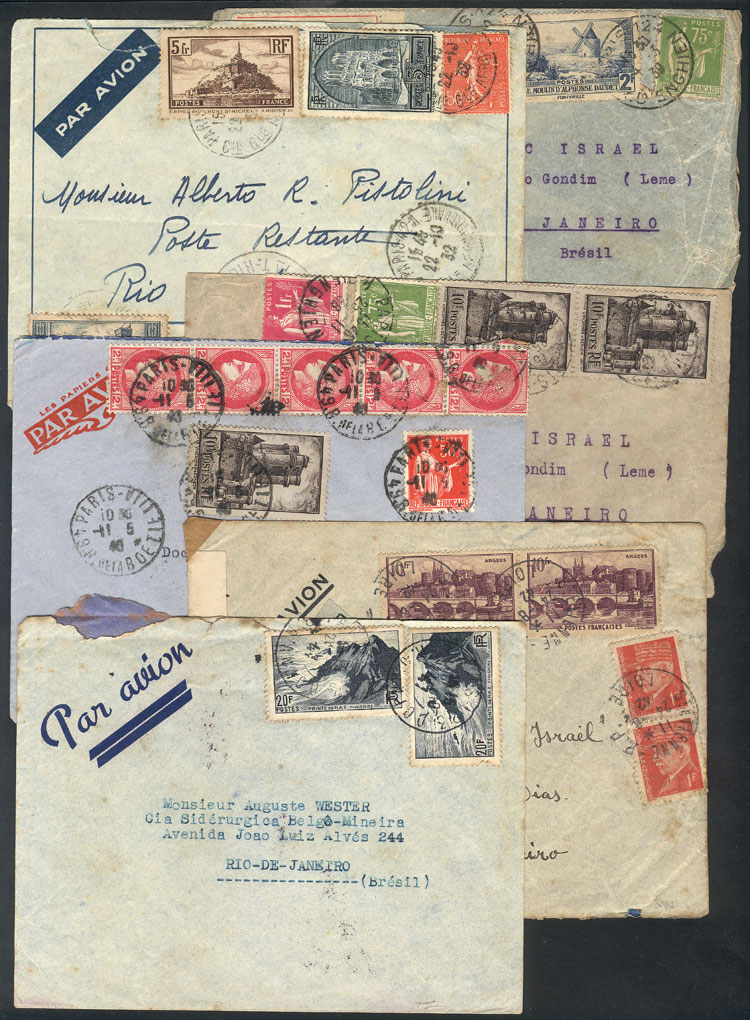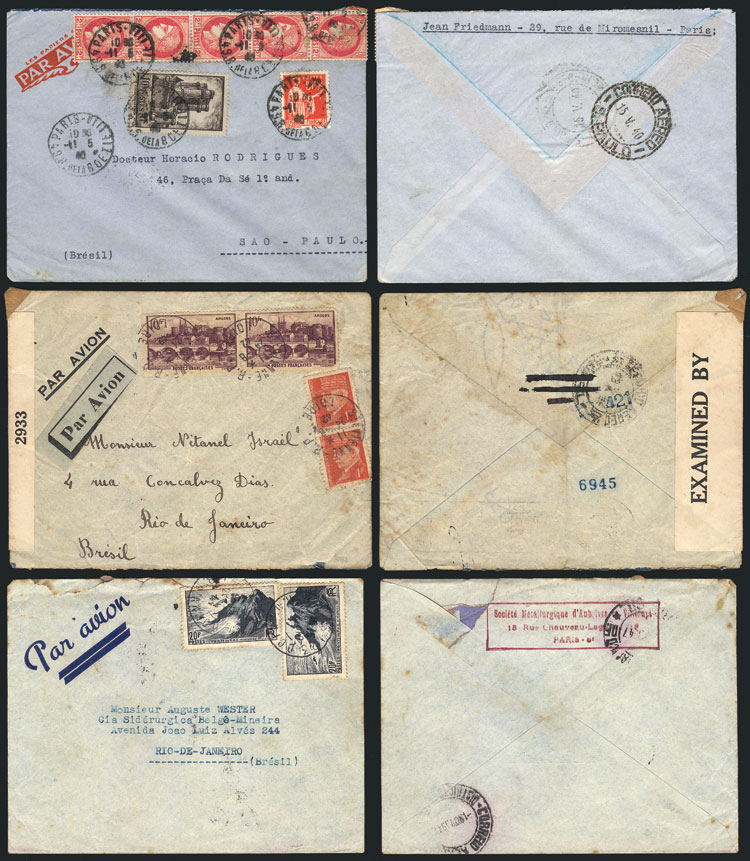 Airmail covers sent to Brazil between 1932 and 1947, one to Poste Restante and with additional Brazilian postage to pay the service, interesting! (Image) (Image-02)