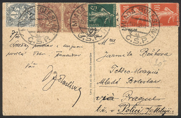 Postcard franked with 30c. sent to Prague. The stamps were postmarked in MLADA BOLESLAVI, VF and rare! (Image) (Image-02)