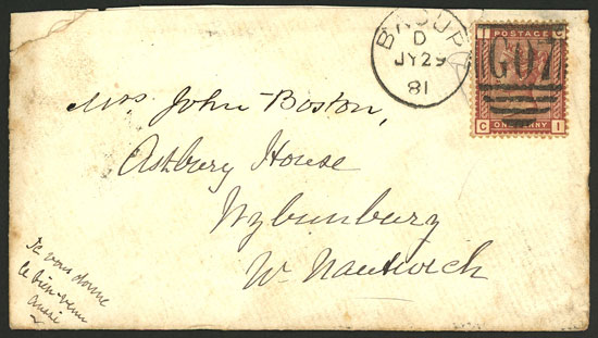 29/JUL/1881 Badup - Nantwich: Cover franked with 1p. (Sc.79), very nice! (Image) (Image-02)