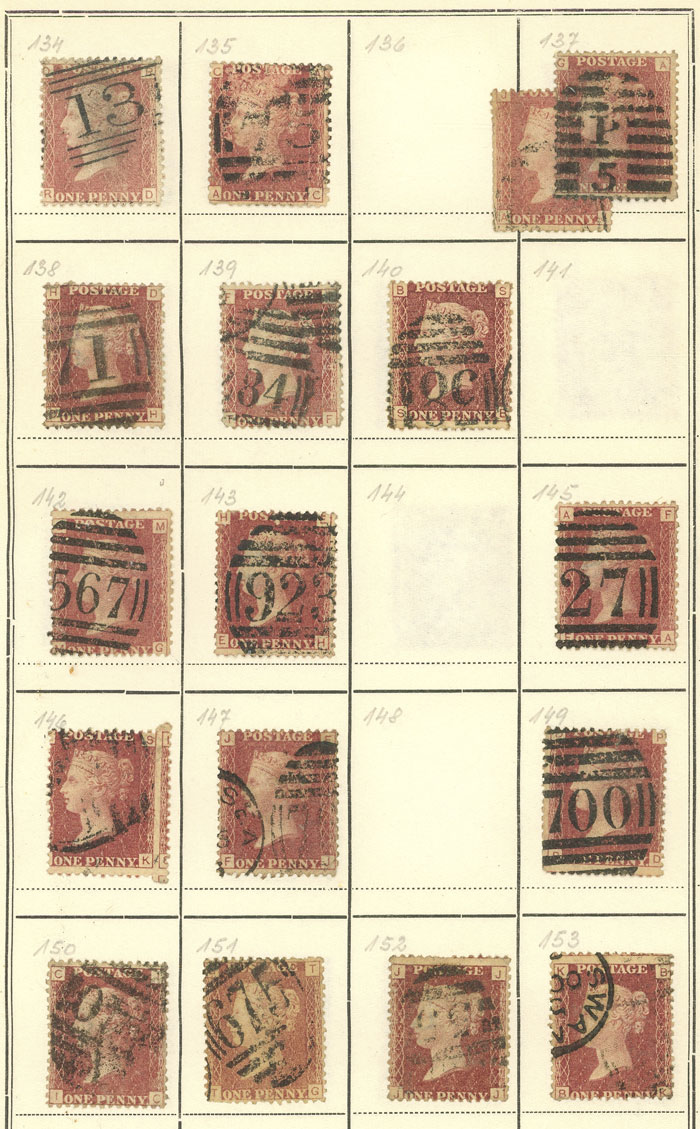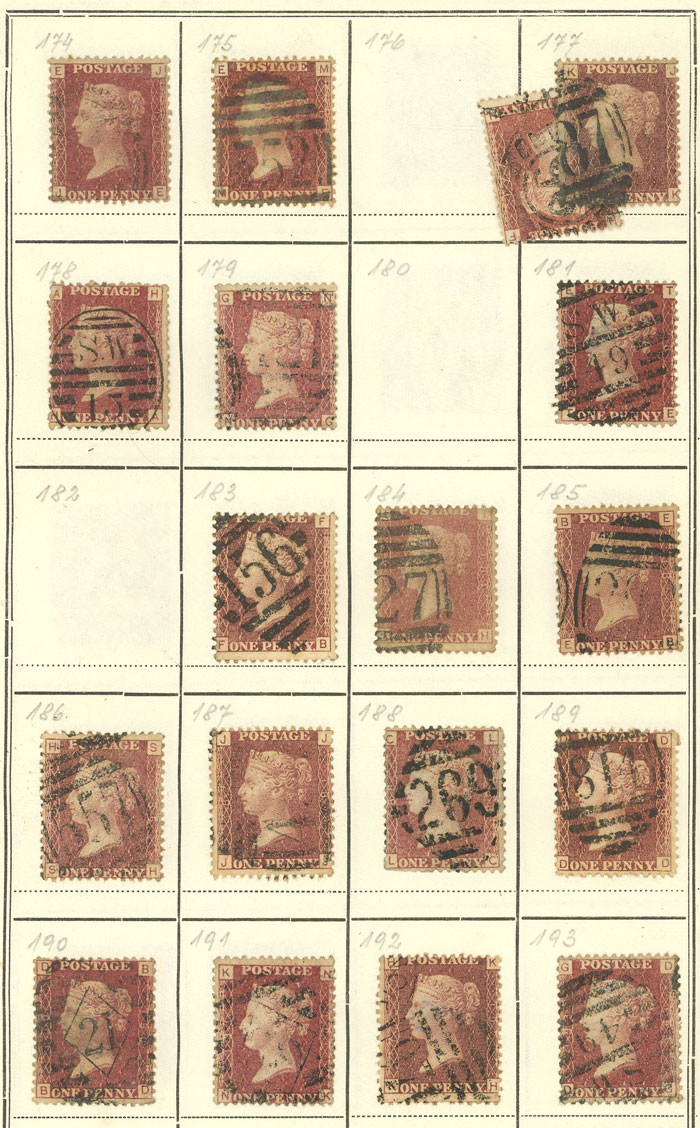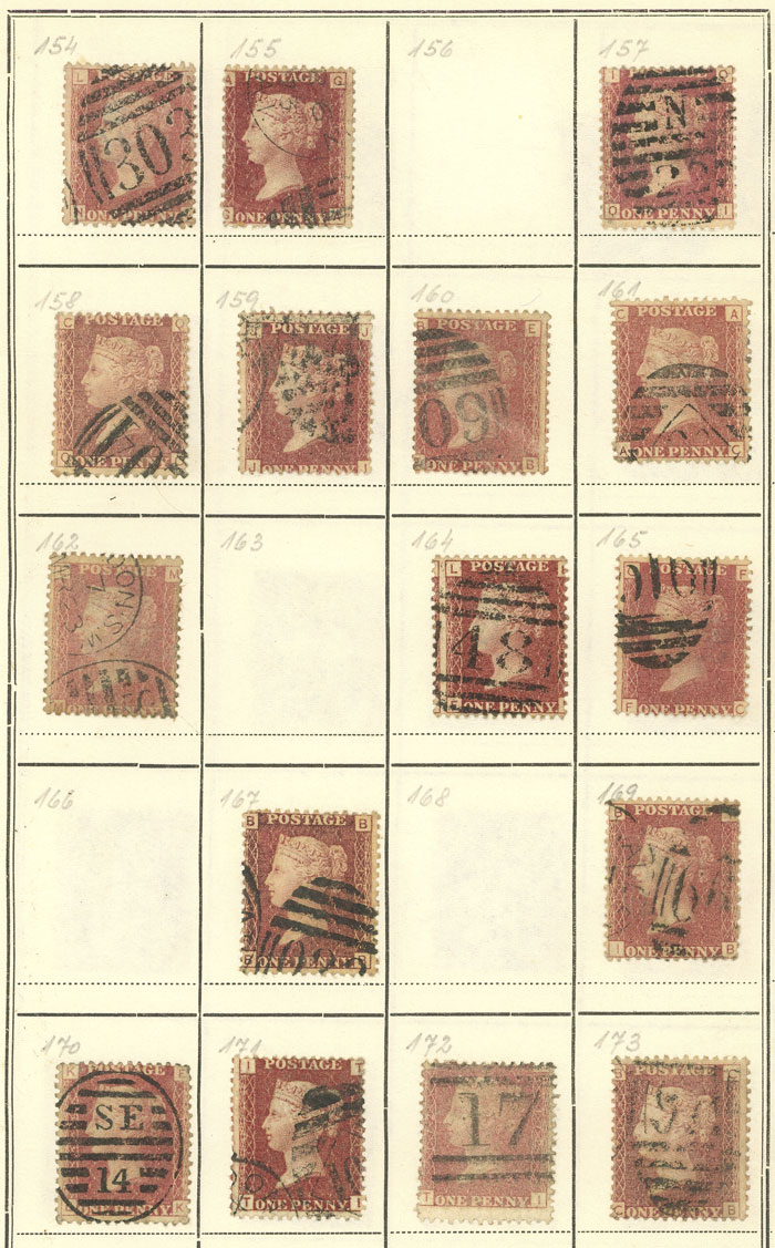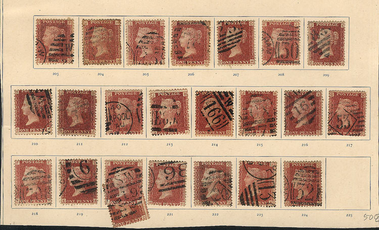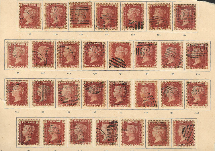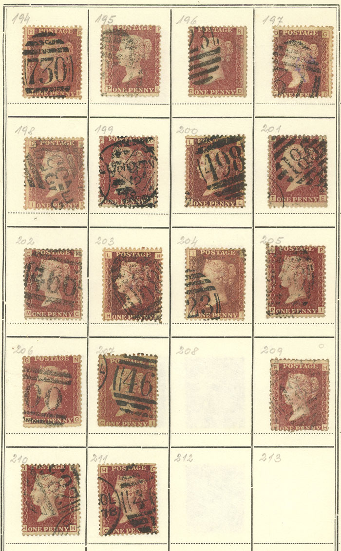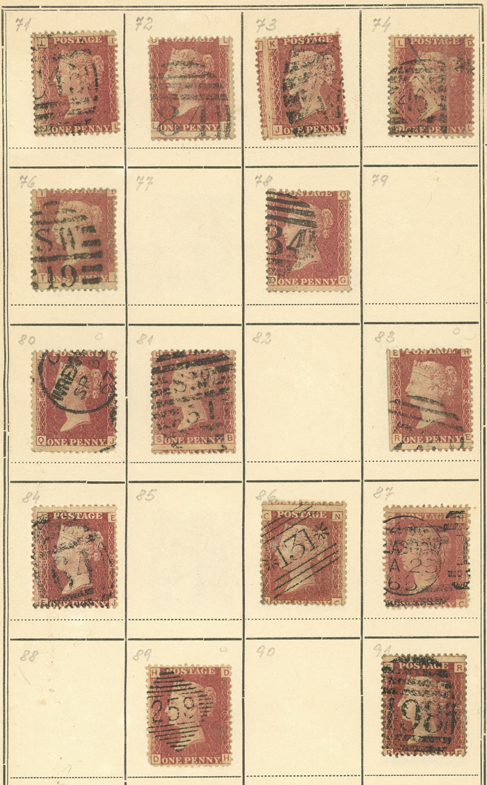 Sc.33, 1864 1p. rose-red, ALMOST COMPLETE set of all the plates (only missing the extremely rare 77 and the last one, 225), mounted on pages of an old album, fine to very fine quality, catalog value US$1,400. (Image) (Image-02)