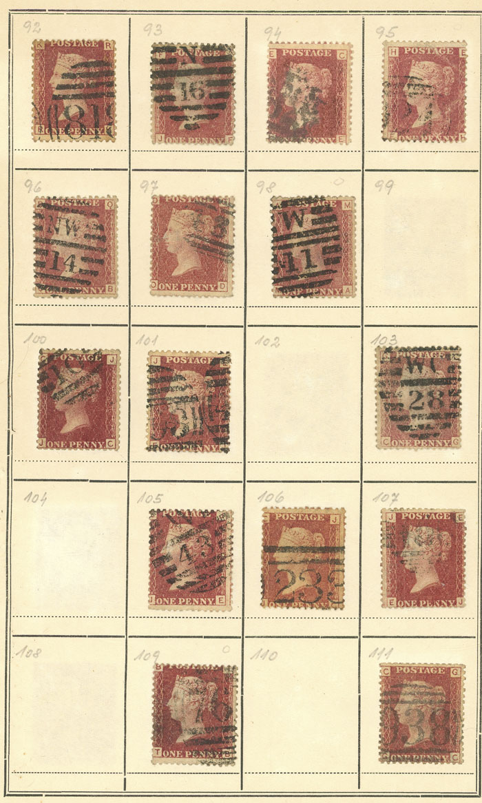 Yvert 26 + 27, 1858/64 1p. red and 2p. blue, 120 stamps of the former and 6 of the latter, classified by plate number in an old approvals book, including some fairly scarce and of good value, apparerently all different, in general of fine