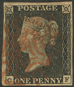 1840 1p. black, the first stamp of the world, used, very nice! (Image)