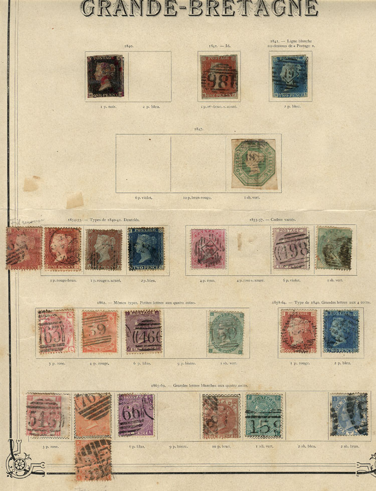 Collection in very old album pages, including scarce and interesting stamps and it may also include color varieties and rare postmarks, mixed quality from very fine to stamps with defects, Scott catalog value US$12,600+, good opportunity