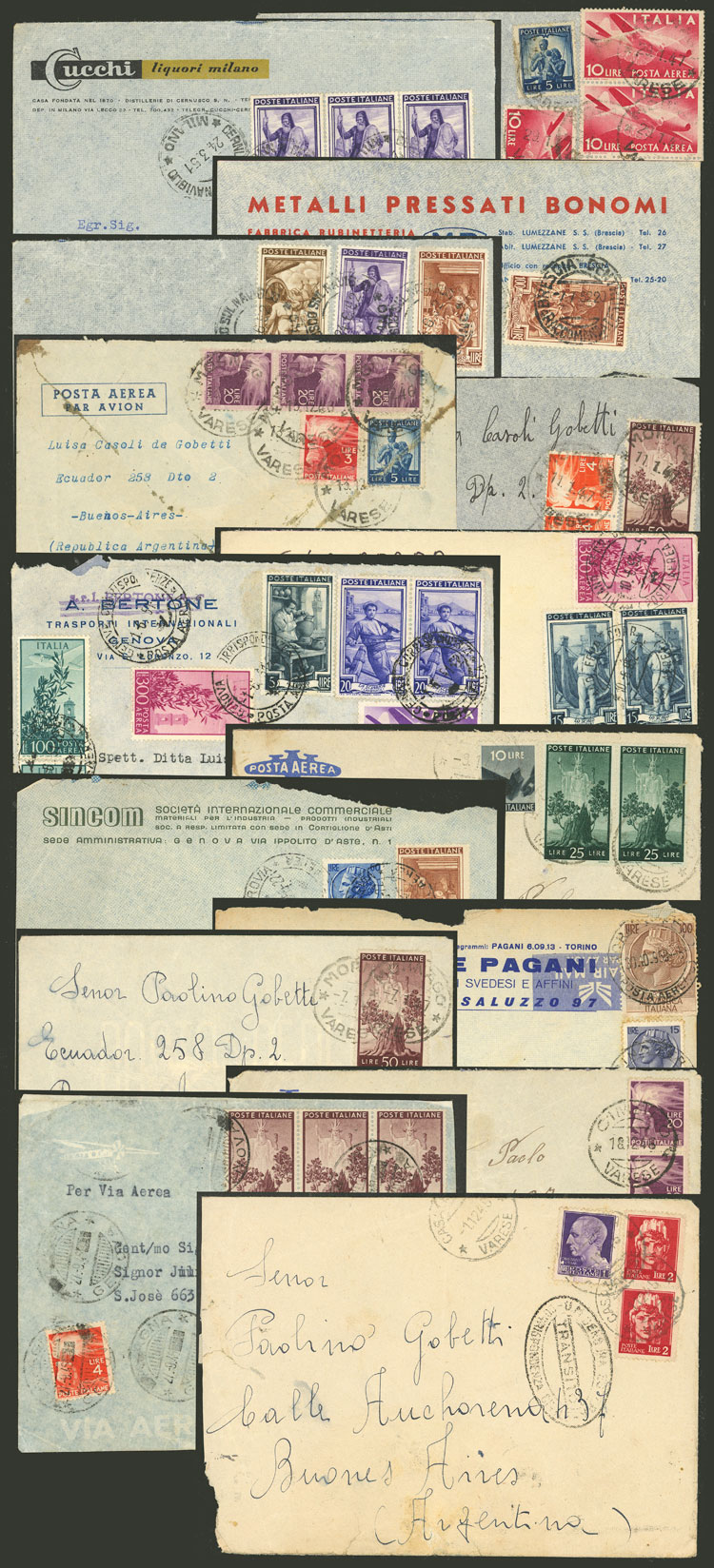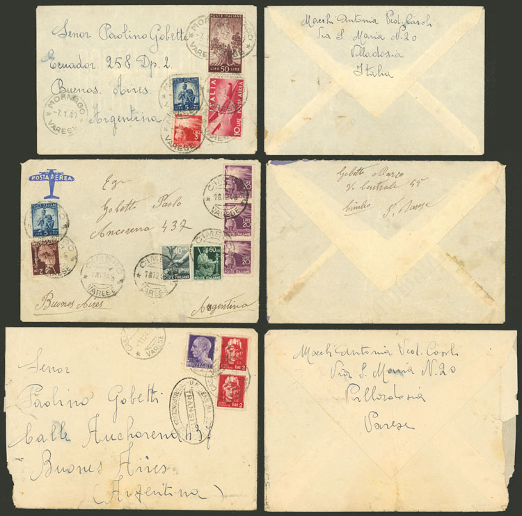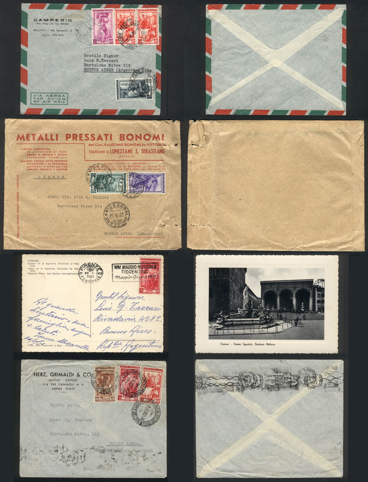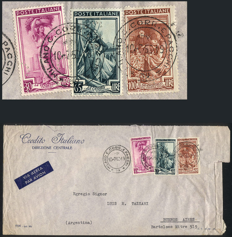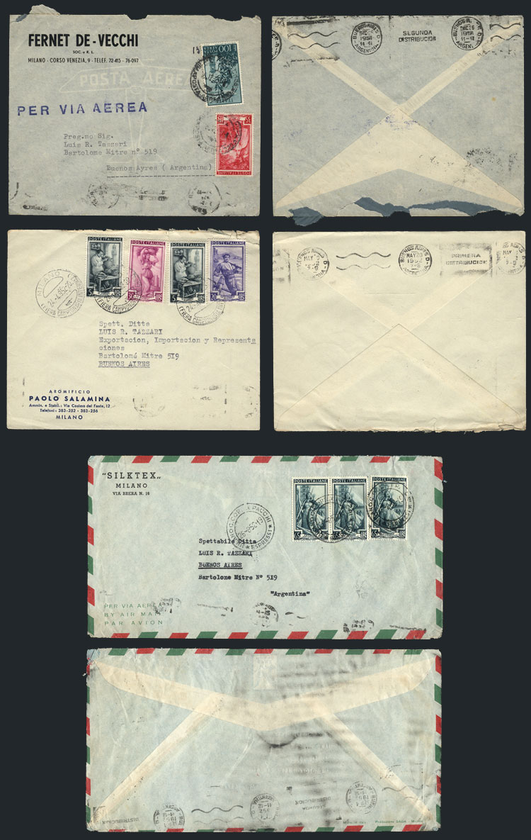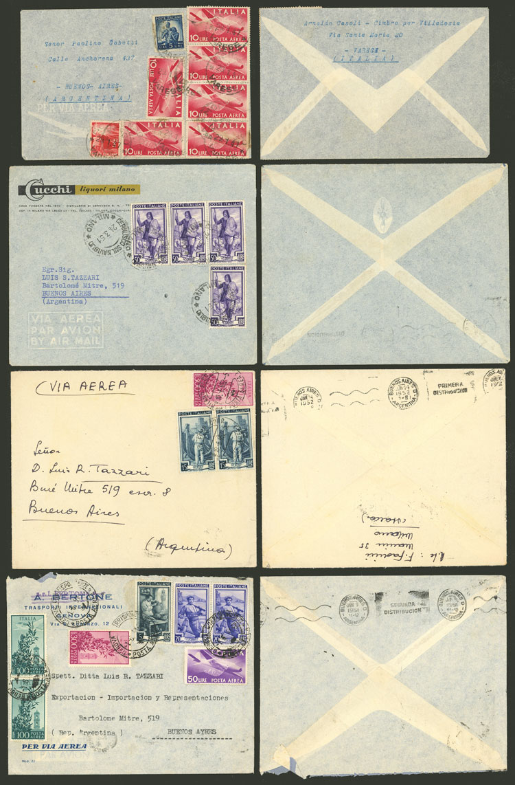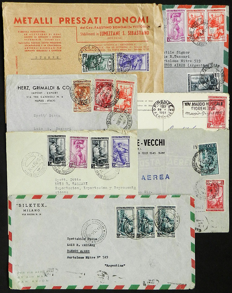 Covers or cards sent to Argentina in 1951/2 with nice postages of the "Italia al Laboro" issue, VF quality! (Image) (Image-02)