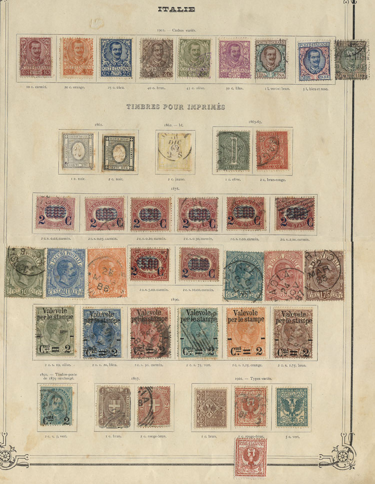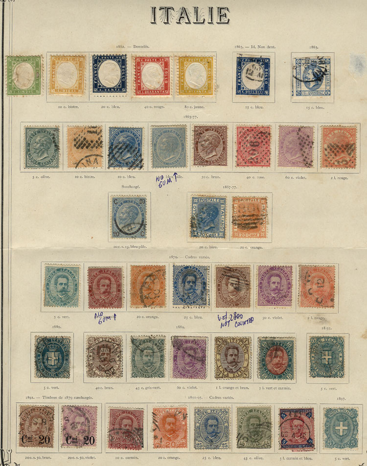 Collection in very old album pages, including scarce and interesting stamps and it may also include color varieties and rare postmarks, mixed quality from very fine to stamps with defects, Scott catalog value US$8,000+ (not considering