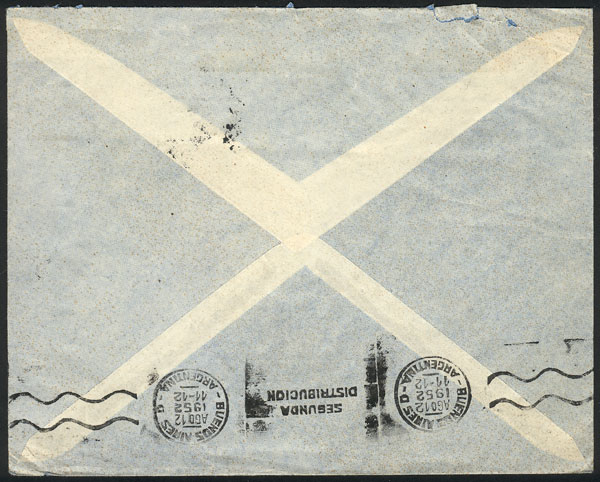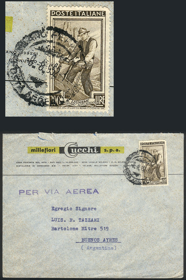 Cover sent from Milano to Argentina on 9/AU/1952 franked with 200L. Lavoro ALONE, VF quality! (Image) (Image-02)