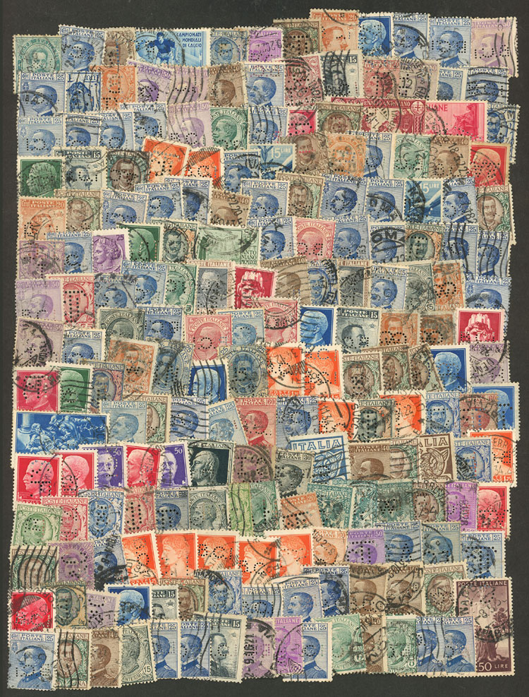 PERFINS: Over 190 stamps with commercial perfins, including interesting material, fine to very fine general quality, low start! (Image)
