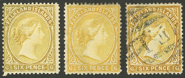 16a, 1891/1902 6p. yellow (2 different, mint) and orange (used), VF quality (Image)