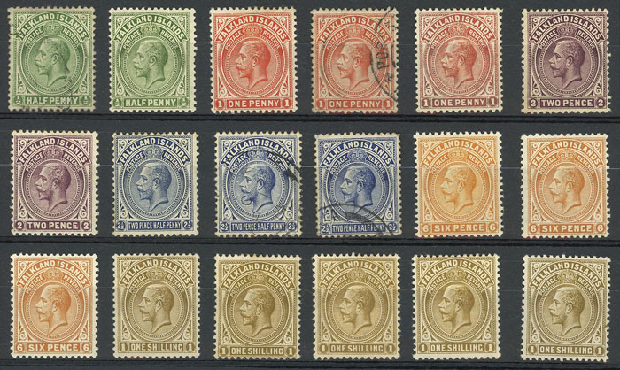 Sc.30/35, 1912/4 George V, the set up to the 1sc., several examples of each value, some used, there are varied shades and different printings, VF general quality, catalog value US$480+ (Image)