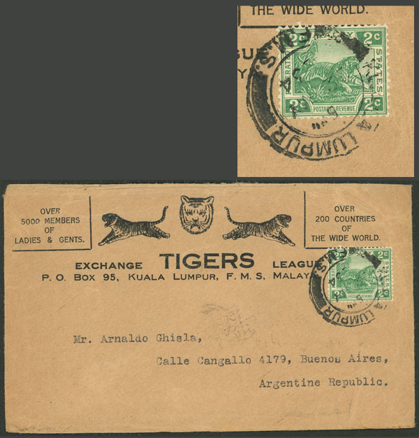 23/MAY/1934 Kuala Lumpur - Argentina, cover that contained printed matter franked with 2c., on back it bears a sorting mark of the Argentine post, very rare destination for printed matter! (Image) (Image-02)