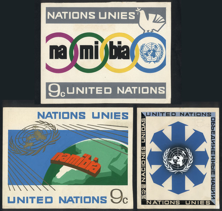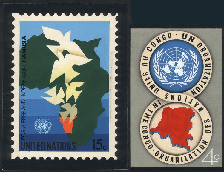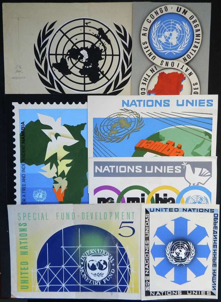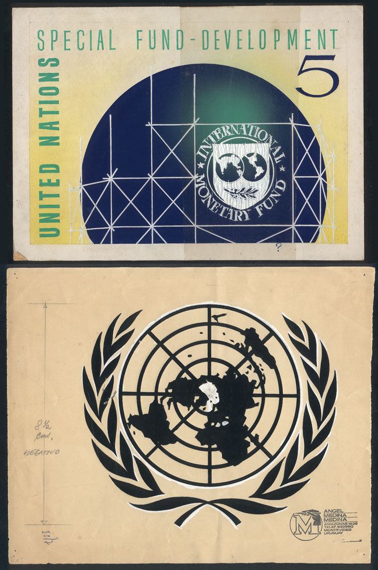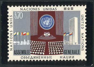 Unadopted artist design (year 1978) for the issue "Assemblee Generale" (FS.0.70 stamp, Sc.79), designed by A. Medina Medina, excellent quality, only known example! (Image) (Image-02)