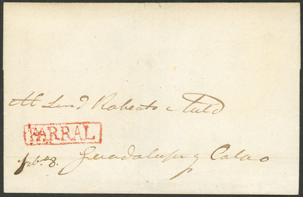 cover dated 7/FE/1840 sent to Guadalupe with the red framed mark PARRAL, very well applied, very fine quality! (Image)