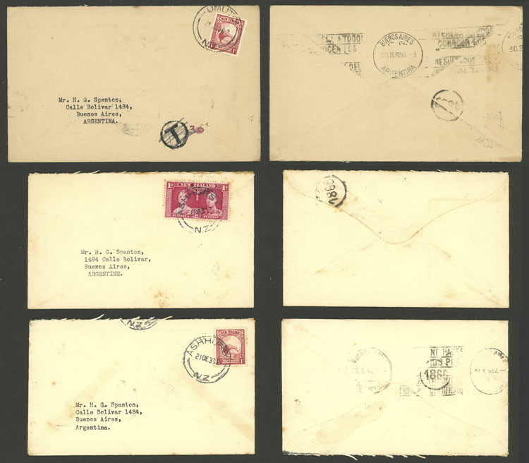 26/MAR/1934 León to Argentina, cover franked with stamps of 1c. and 2c. (total 3c.) with printed control marks, on back there are transit marks of Corinto, Valparaiso and Buenos Aires, and Tucumán arrival of 6/MAY!, VF! (Image)