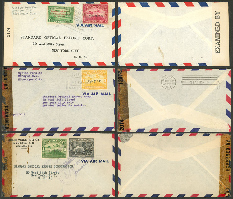 Airmail covers sent from Managua to USA in 1942/3, nice postages, censored, VF! (Image) (Image-02)