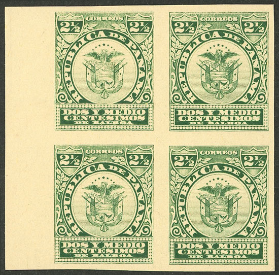 92, 1906 2½c. Coat of arms, PROOF in green printed on thick laid paper, imperforate block of 4, VF quality! (Image)