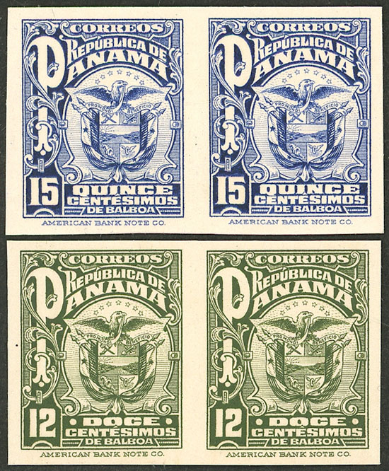 140 + 141, 1924 Coat of arms 12c. and 15c., PROOFS on thick card stock, beautiful imperforate pairs, excellent quality! (Image)