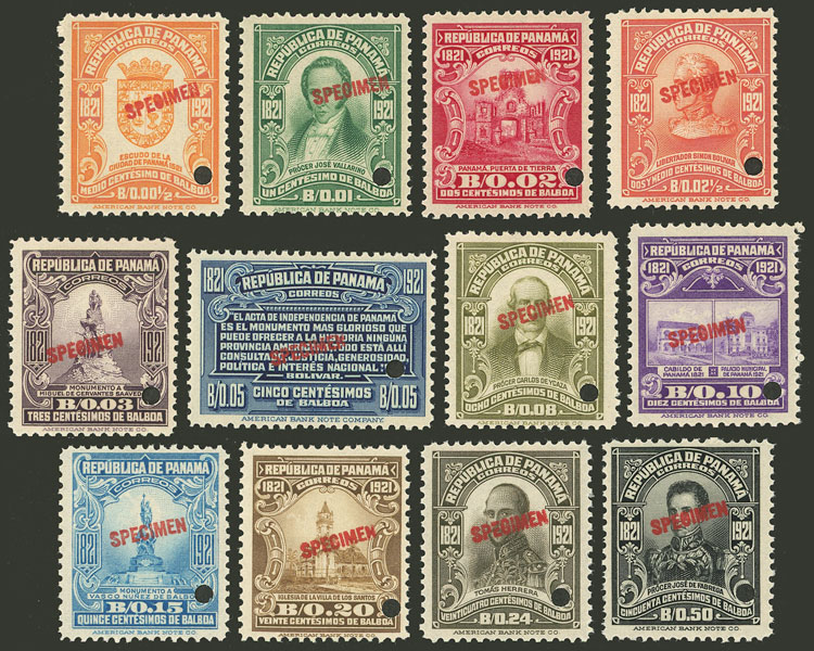 121/132, 1921 Centenary of Independence, complete set of 12 values with SPECIMEN overprint and punch hole, MNH, excellent quality! (Image)