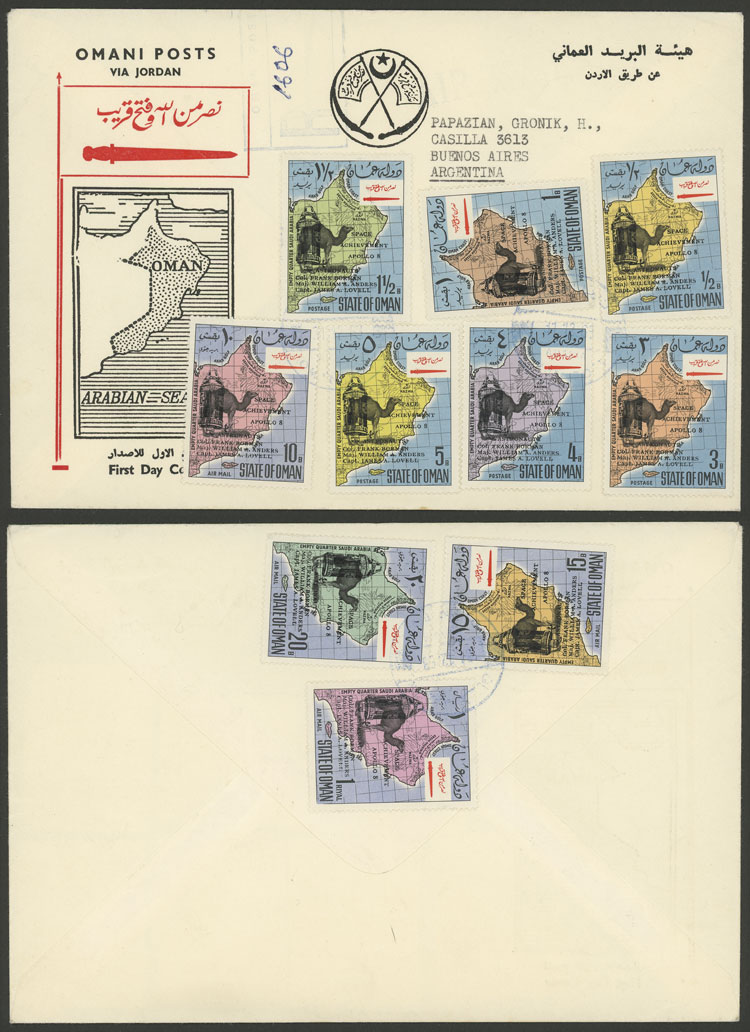 Registered cover sent to Argentina on 31/DE/1969, with spectacular franking on both sides, very fine quality, very rare destination! (Image)