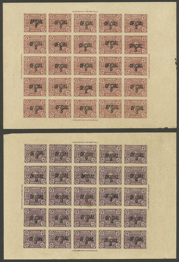 Sc.O16/17, 1889 complete set of 2 overprinted values, cmpl. imperforate sheets of 25, mint without gum as usual, VF quality (Image) (Image-02)