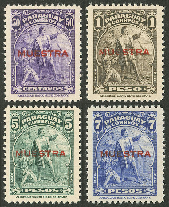 422/425, 1943 Columbus, complete set of 4 values with MUESTRA overprint, excellent quality! (Image)
