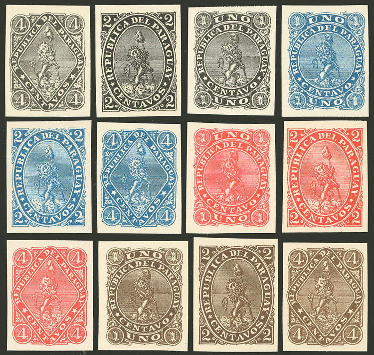 14/16, 1881 Lions, COLOR PROOFS, 4 complete sets in black, blue, red and chestnut, excellent! (Image)