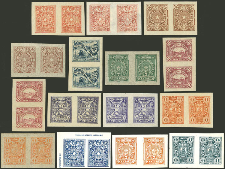 + other values, 1886 PROOFS of the stamps used to make the first issues of official stamps, 15 different pairs, excellent quality! (Image)