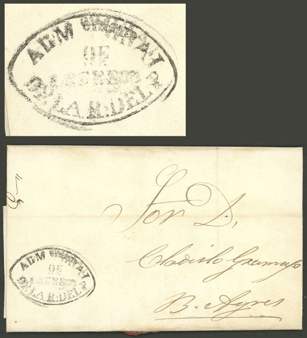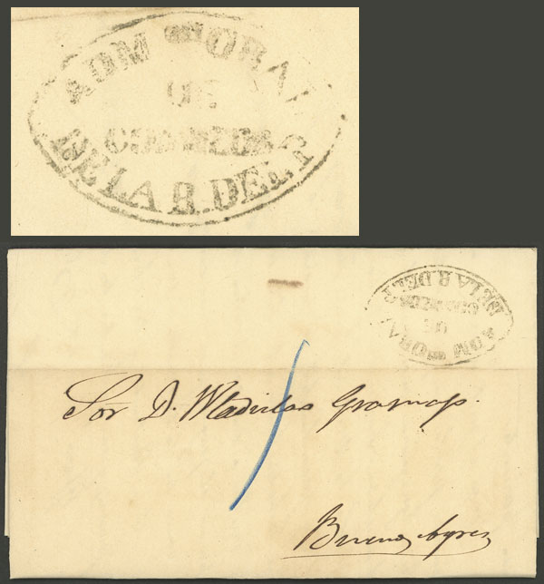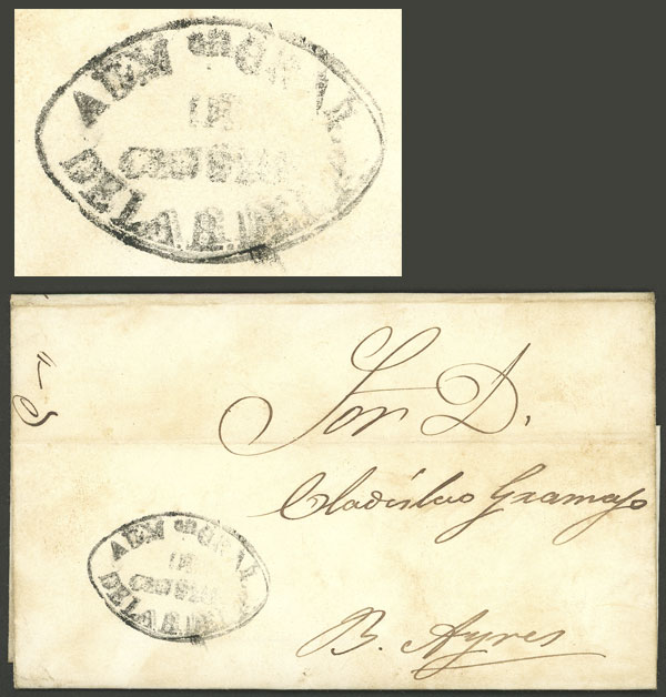 letter dated Asunción 19/OC/1860 sent to Buenos Aires (by schooner Yporá), with black mark "ADMON. GRAL. DE CORREOS DE LA R. DEL P.", excellent quality. Entire letters of Paraguay with verifiable date of use are rare! (Image)
