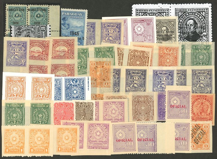 Interesting lot of IMPERFORATE pairs and blocks of 4, most unused (one used), in general of fine to very fine quality (about 3 of the more modern pairs with small thins), large potential value, good opportunity! (Image)