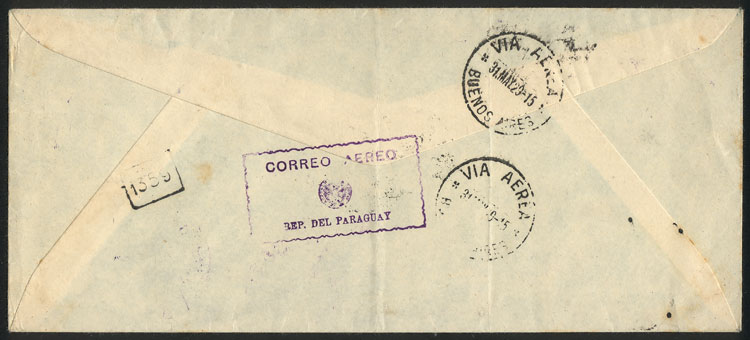 Registered airmail cover (commercial) sent from Asunción to Buenos Aires on 26/MAY/1929 with nice postage of 1150P., VF quality! (Image) (Image-02)