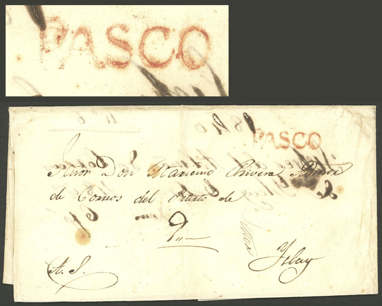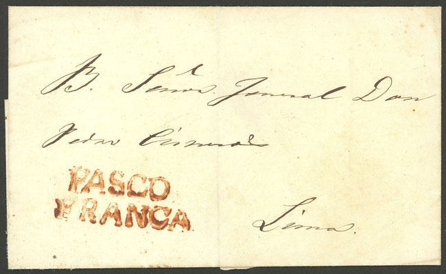 cover sent to Lima with the marks "PASCO" and "FRANCA" in rust red perfectly applied, excellent quality! (Image)