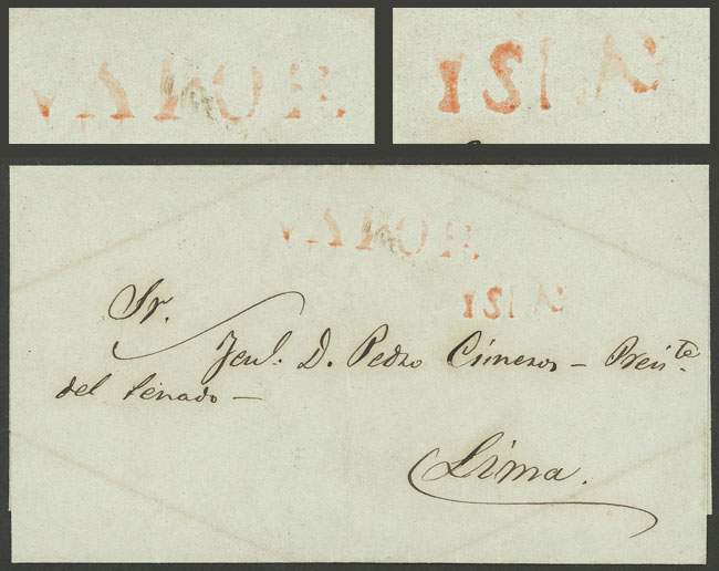 cover sent to Lima with the red marks "YSLAY" and "VAPOR", excellent quality! (Image)