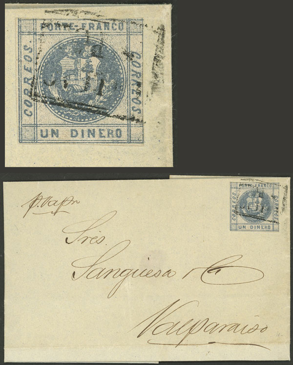 13/AU/1859 Lima - Valparaiso, dated folded cover franked by Sc.7 (Un Dinero of 1858), VF quality! (Image)