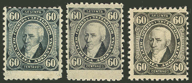 114A + 114B, 1889 60c. Posadas, the 3 colors in existence, VF quality! (Image)