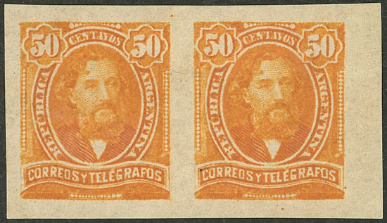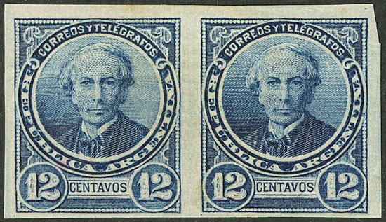 1889 12c. Alberdi, IMPERFORATE PAIR, mint lightly hinged, VF quality! (Image)