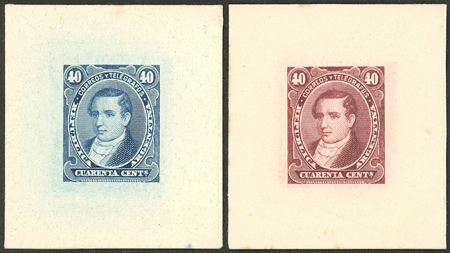 40c. Moreno, 2 DIE PROOFS in different colors, printed on card, VF quality! (Image)