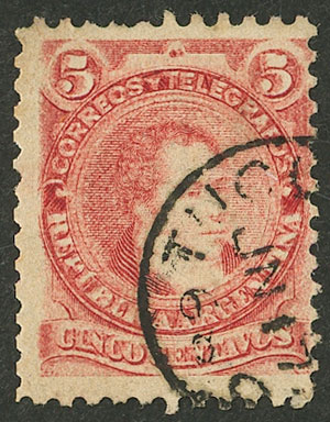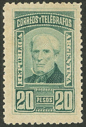 5c. Rivadavia type I, with compound perforation and COMPLETE DOUBLE IMPRESSION variety, VF quality, very rare! NOTE: The catalog value is wrong and will be corrected in the next edition. (Image)
