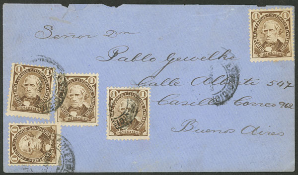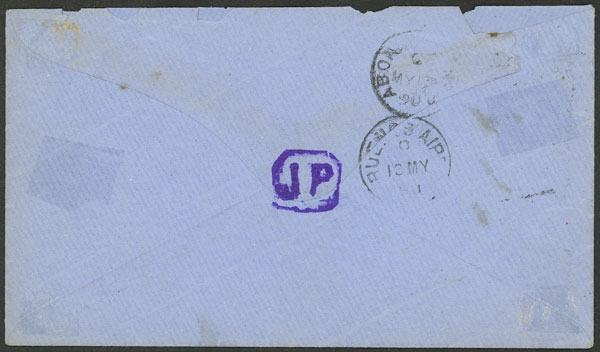 GJ.121A, 1c. worn plate and COMPOUND PERFORATION, 5 examples franking a cover used locally in B.Aires on 13/MAY/1890, VF! (Image) (Image-02)