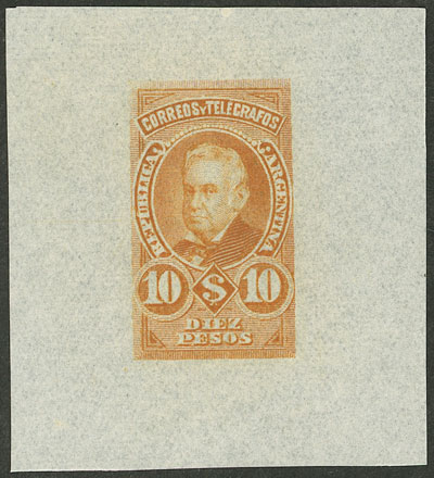 10P. Vicente López (unissued), DIE ESSAY in orange, very thin transparent paper, VF quality (Image)